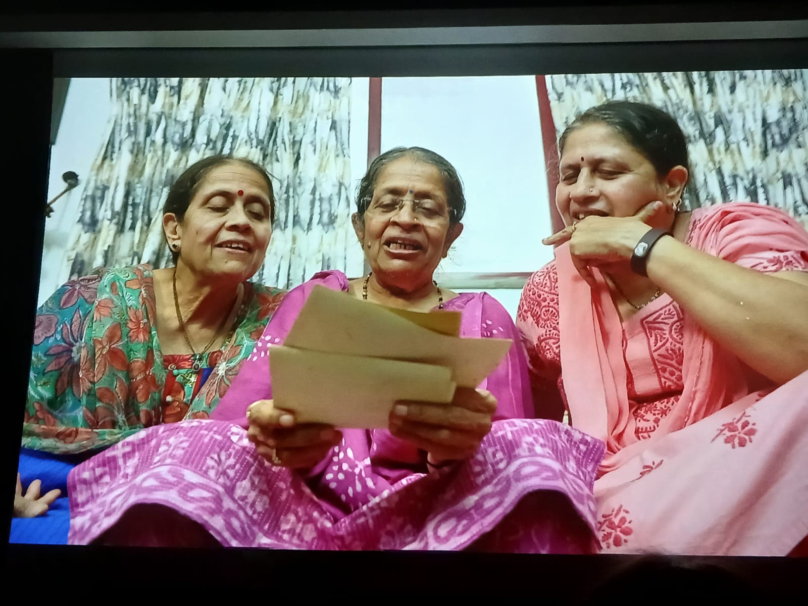 A memorable moment from the film: Rohini and her sisters seeing old family photographs.