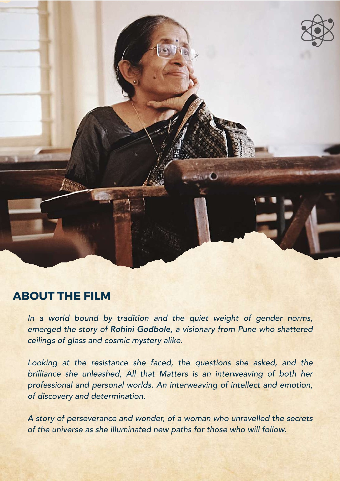 Beautiful poster of the documentary film 'All That Matters' on Prof Rohini Godbole.